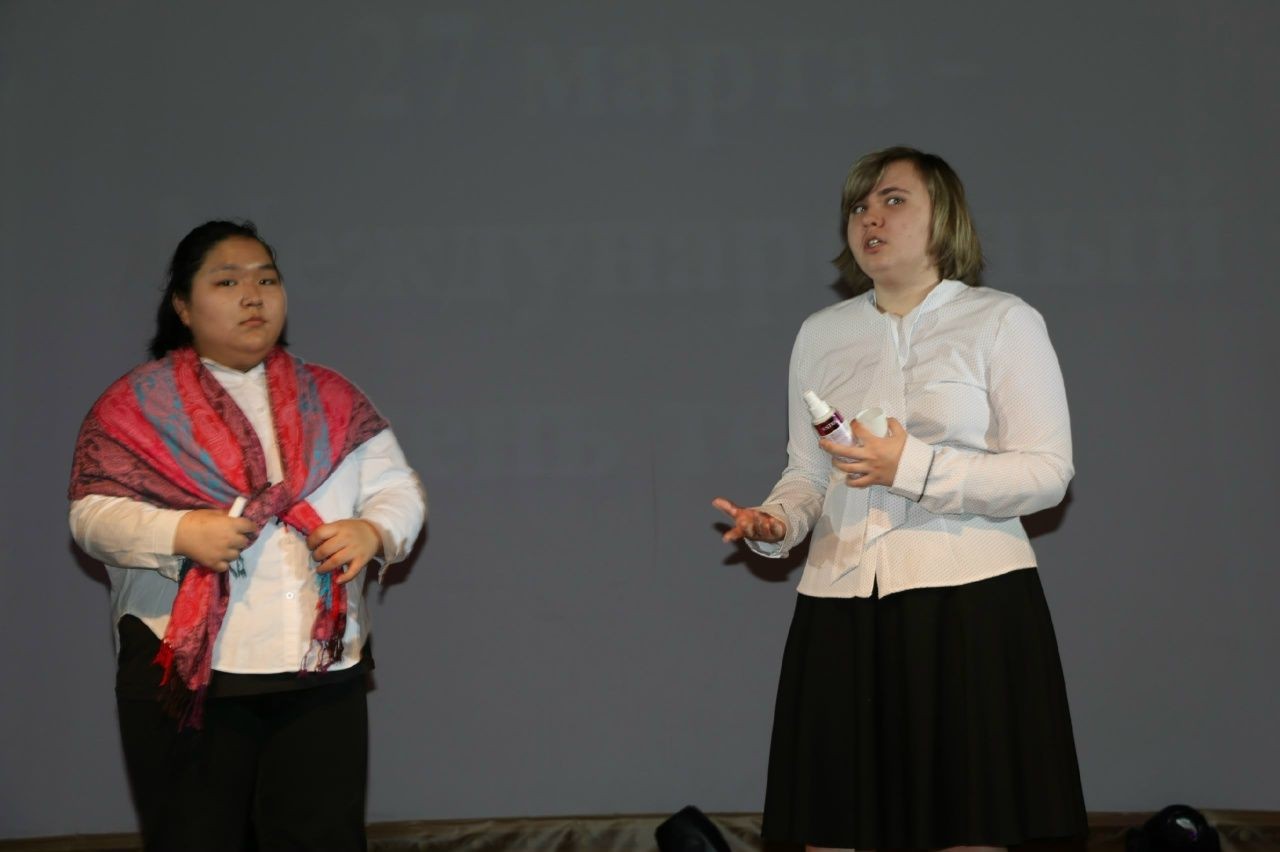 Помимо отрывков из пьес зрителям была показана видеозапись отрывка из спектакля, поставленного студентами техникума в 2023 году.