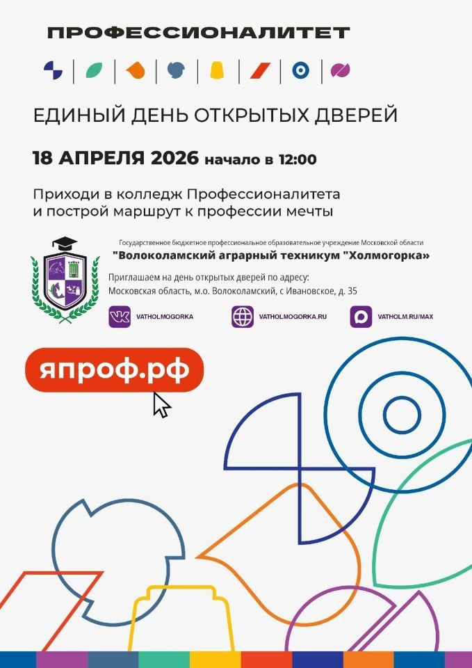 Волоколамский аграрный техникум «Холмогорка» приглашает абитуриентов и их родителей на ЕДИНЫЙ ДЕНЬ ОТКРЫТЫХ ДВЕРЕЙ!