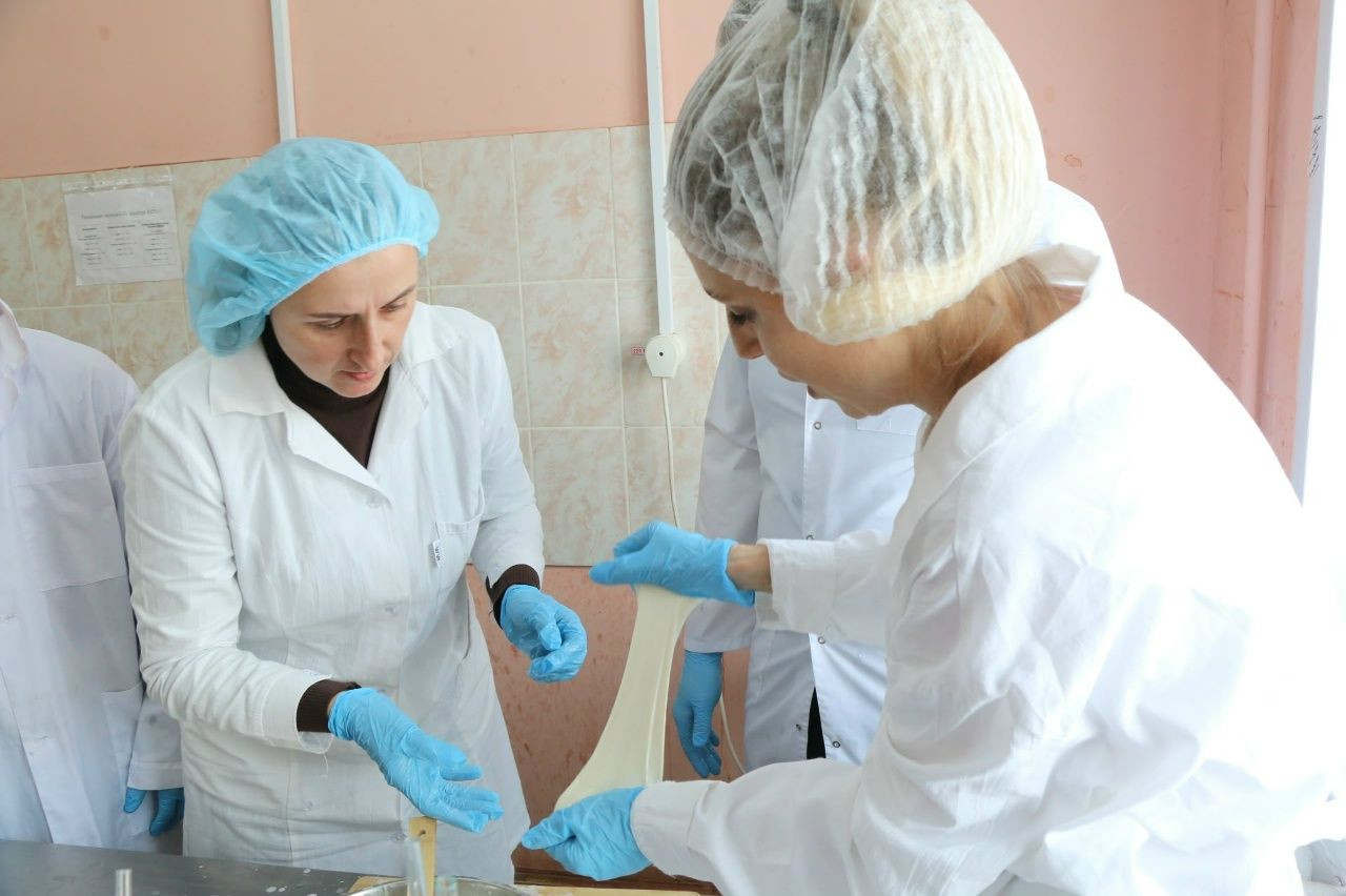 Процесс изготовления начал свою историю с важнейшего этапа — оценки качества сырья. Студенты детально исследовали молоко, определяя его пригодность для будущего изделия. Это дало возможность правильно рассчитать дозировку закваски и необходимого количества сычужного фермента, гарантирующего формирование качественного сгустка.