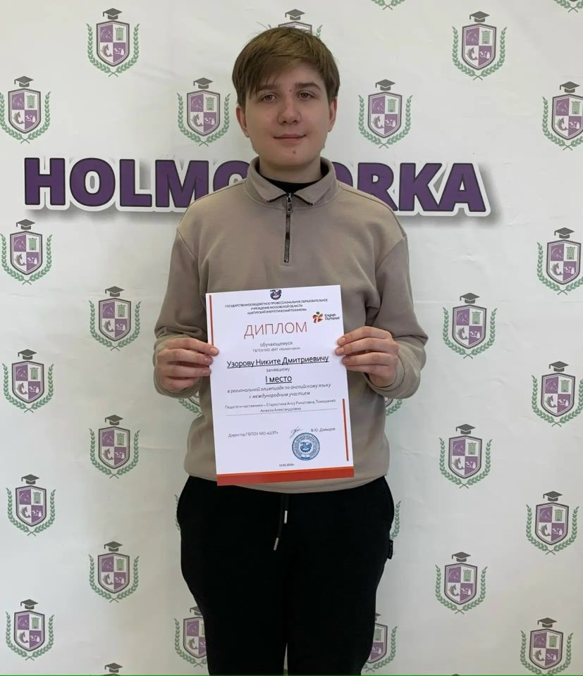 От всей души поздравляем нашего талантливого студента группы 12П Узорова Никиту с заслуженной победой на региональной олимпиаде по английскому языку с международным участием !