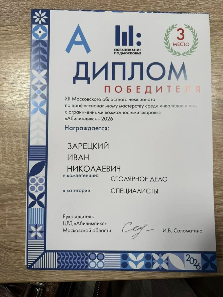 15 апреля 2026 года Иван занял почётное 3‑е место в компетенции «Столярное дело».
