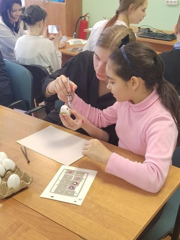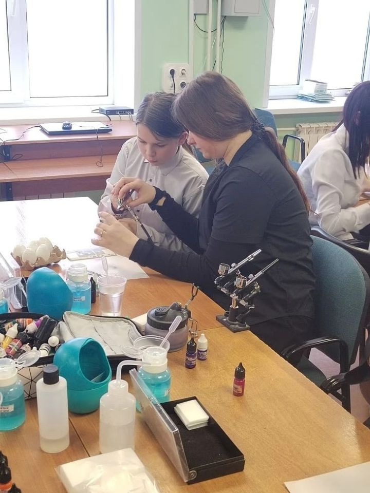 Наши талантливые студенты из группы 21 ТИ не сидят на месте —19 февраля они отправились в «Волоколамскую школу‑интернат», чтобы провести мастер‑класс по аэрографии «Пасхальное чудо» под руководством преподавателя