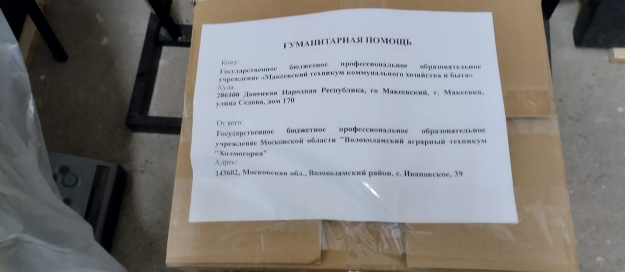 В рамках налаженного сотрудничества Волоколамский аграрный техникум «Холмогорка» собрал и отправил гуманитарную помощь подшефной организации — ГБПОУ «Макеевский техникум коммунального хозяйства и быта»