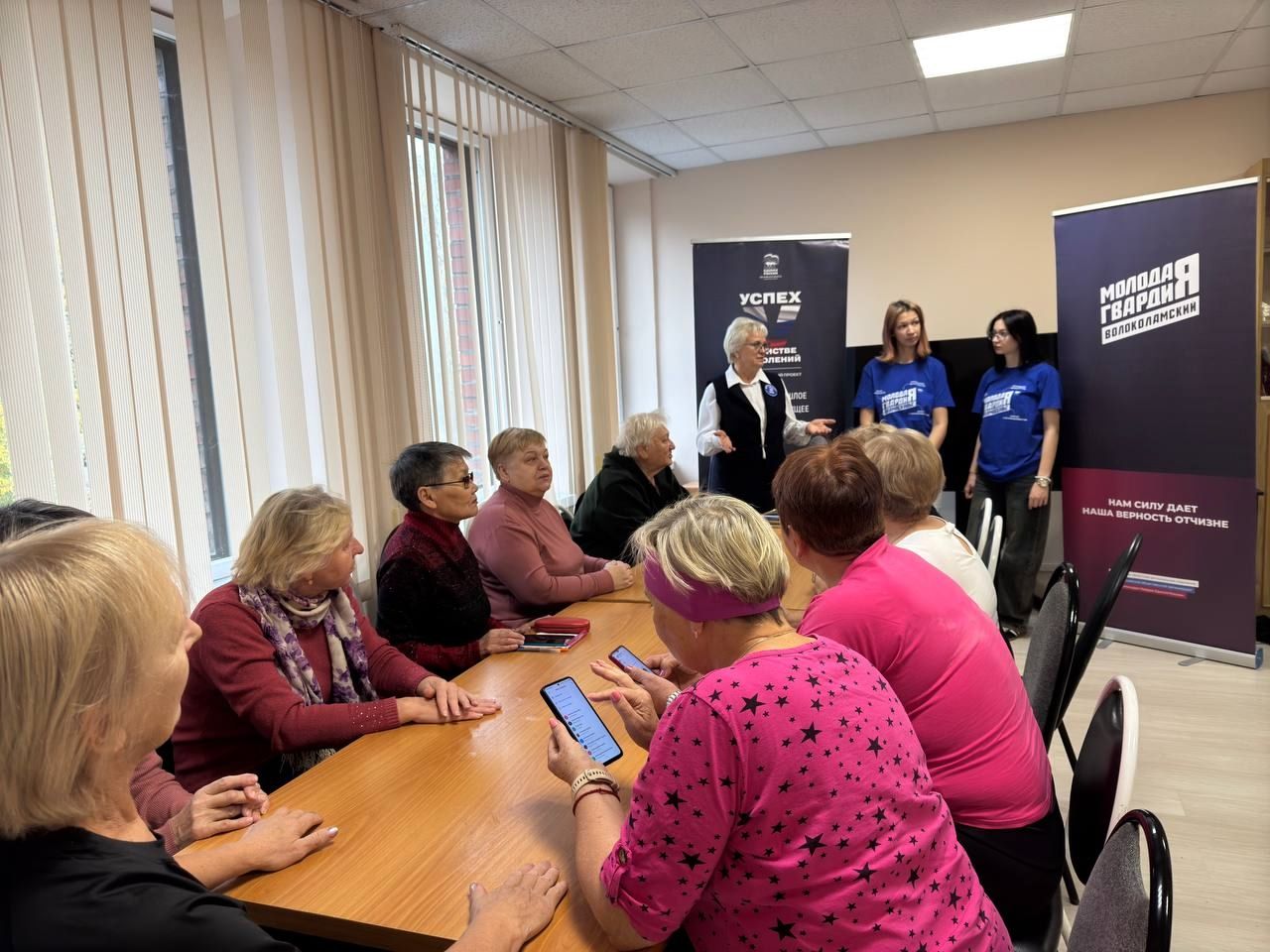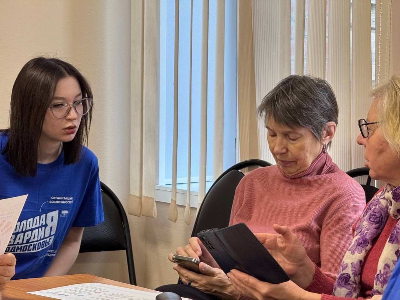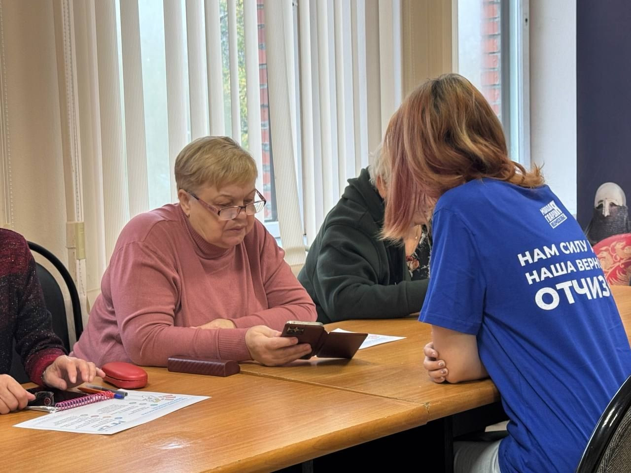 Студенты техникума Анастасия Павлинова и Алиса Сергеева провели познавательный урок цифровой грамотности для участников клуба «Активное долголетие» при поддержке председателя совета депутатов.