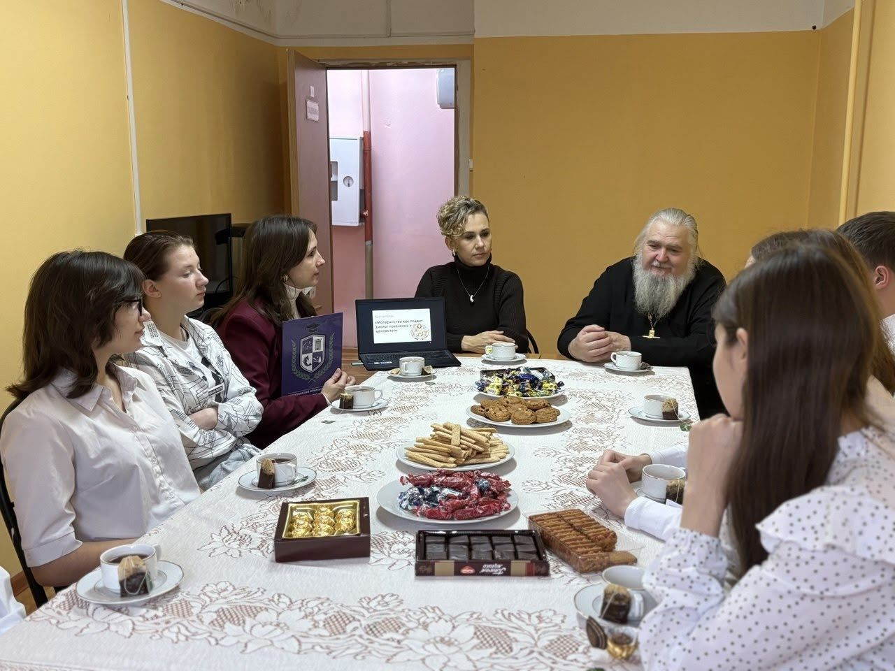 Священник Андрей —настоятель Храма Рождества Пресвятой Богородицы села Суворово. В своём выступлении он осветил духовно‑нравственные аспекты материнства и роль семьи в формировании личности и духовно-нравственных ценностей.